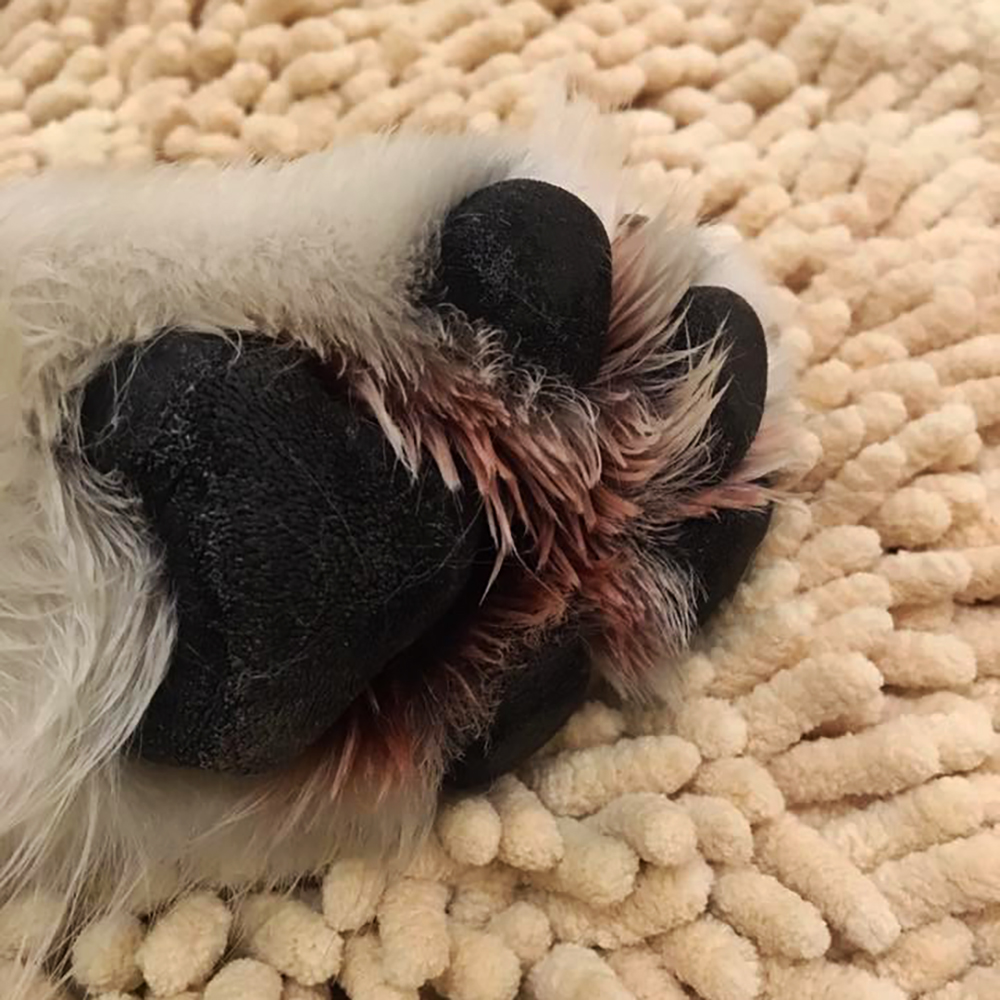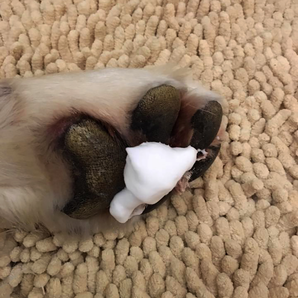 Pfoten- und Nasenpflege mit dem milden Pfotenschaum.