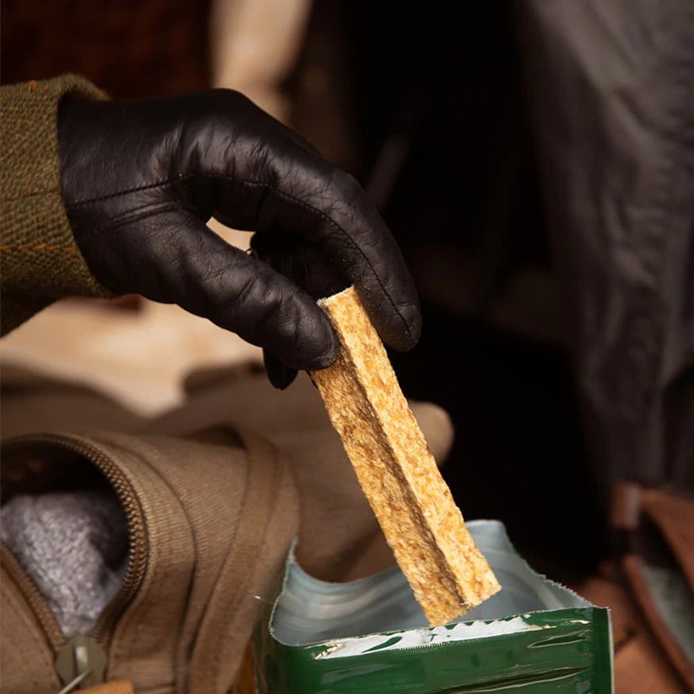 Nach individuellem Bedarf abhängig von Gewicht, Alter, Rasse und Aktivität als Snack zwischendurch unter Aufsicht füttern.