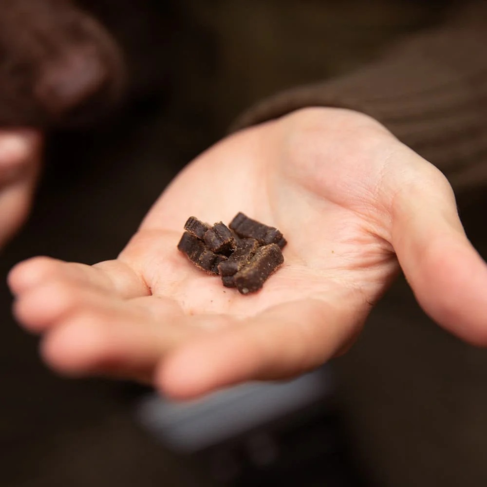 Nach individuellem Bedarf abhängig von Gewicht, Alter, Rasse und Aktivität als Snack zwischendurch unter Aufsicht füttern.
