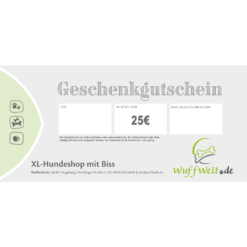 Nichts passendes gefunden oder Du möchtest Dich noch nicht auf eines unserer wuffwelt Produkte Produkte festlegen, dann ist ein Geschenkgutschein die optimale Wahl um Freude zu verschenken.Per Post erhälst Du einen Geschenkgutschein. Plane hierfür 3-5 Werktage für den Versand ein, bis er bei Dir eintrifft.