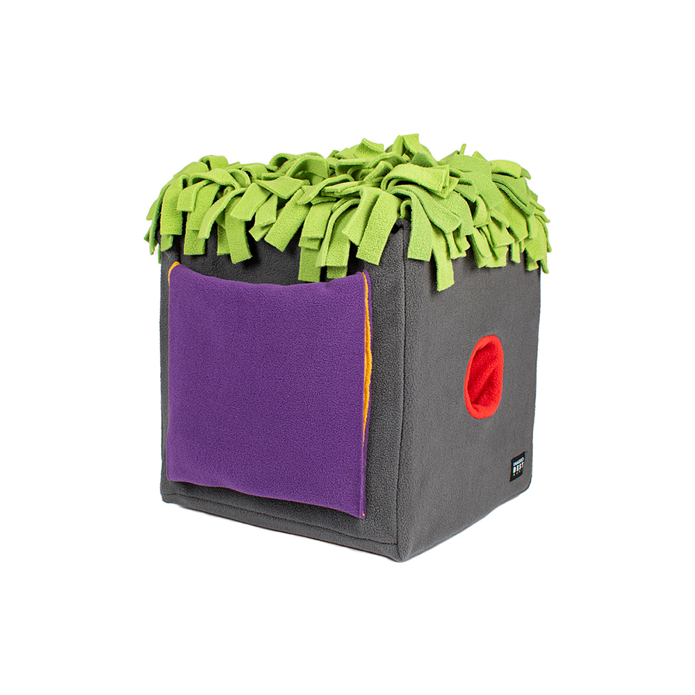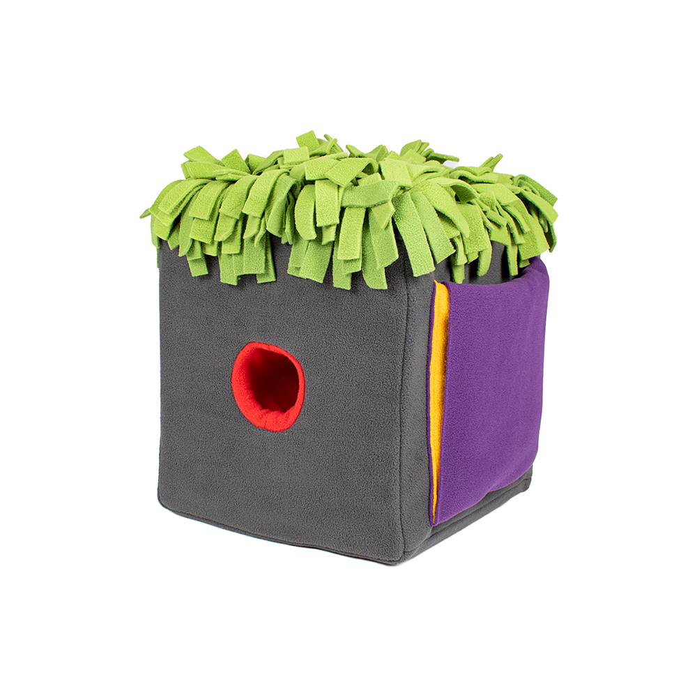 Vergrabe Leckerlis tief zwischen den „Grashalmen", rolle sie zwischen den Stofflagen ein oder versenke sie tief in den Einbuchtungen und Täschchen.