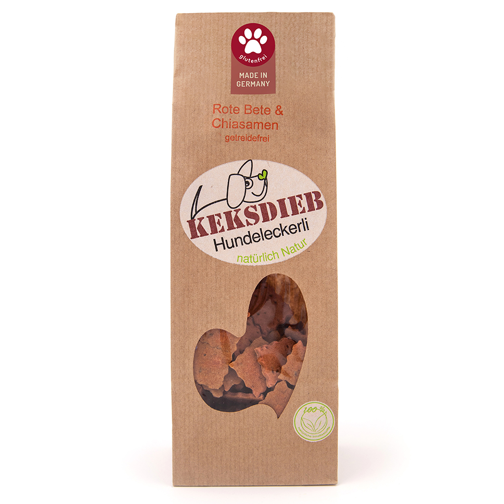 Produktinformationen "Keksdieb Hundekekse Rote Bete und Chiasamen 100g Tüte"