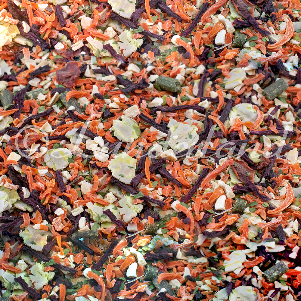 Karotte, Pastinake, Rote Beete, Luzerne, Petersilienstängel, Petersilienwurzel, Tomate, Broccoli, Grünkohl, Spinat, Wirsingkohl; Dill, Brennnessel, Löwenzahn - getreidefrei