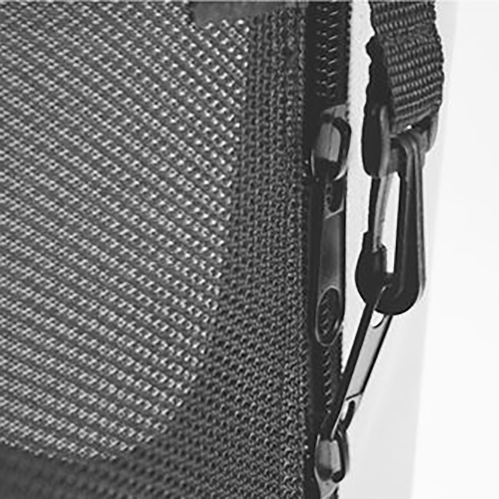 - Sicherheitslaschen oben und unten, z.B. zur Befestigung im Fahrzeug