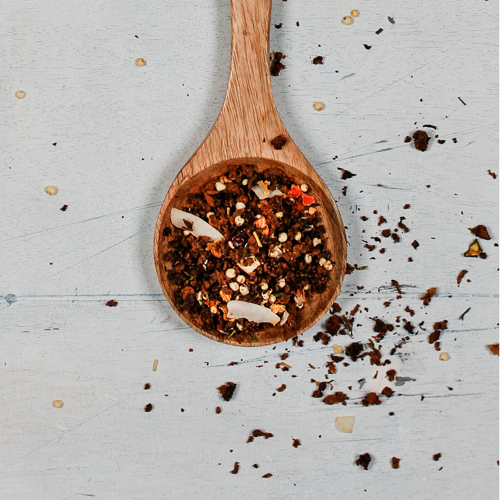 In Zusammenarbeit mit Ute Wadehn von Barfgut haben wir unser beliebtes Müsli nun auch als Welpenmüsli für die Jüngsten, die bewusst und gesund aufwachsen wollen. Luftgetrocknetes Lammfleisch mit Karotte, Zucchini und Hagebutte als Grundnahrung, ergänzt werden muss noch Dorschlebertran zur Vitamin D Versorgung und Seealge. Am besten nutzen Sie hierfür einen Seealgenrechner, der auch den Jodgehalt des verwendeten Seealgenmehls berücksichtigt.