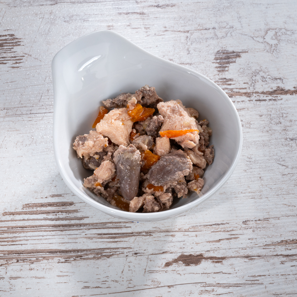 ? Extra viel Fleisch: Sichtbare, saftige Fleischstückchen & Innereien von Kaninchen und Huhn sind reich an hochwertigen und leicht verdaulichen Proteinen