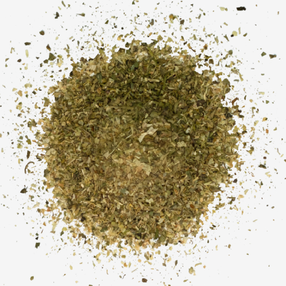 *ein handelsüblicher gestrichener Teelöffel enthält ca. 3g der Kräutermischung und ca. 8mg CBD. Bitte – wenn möglich – auf 2x täglich verteilt übers Futter geben.